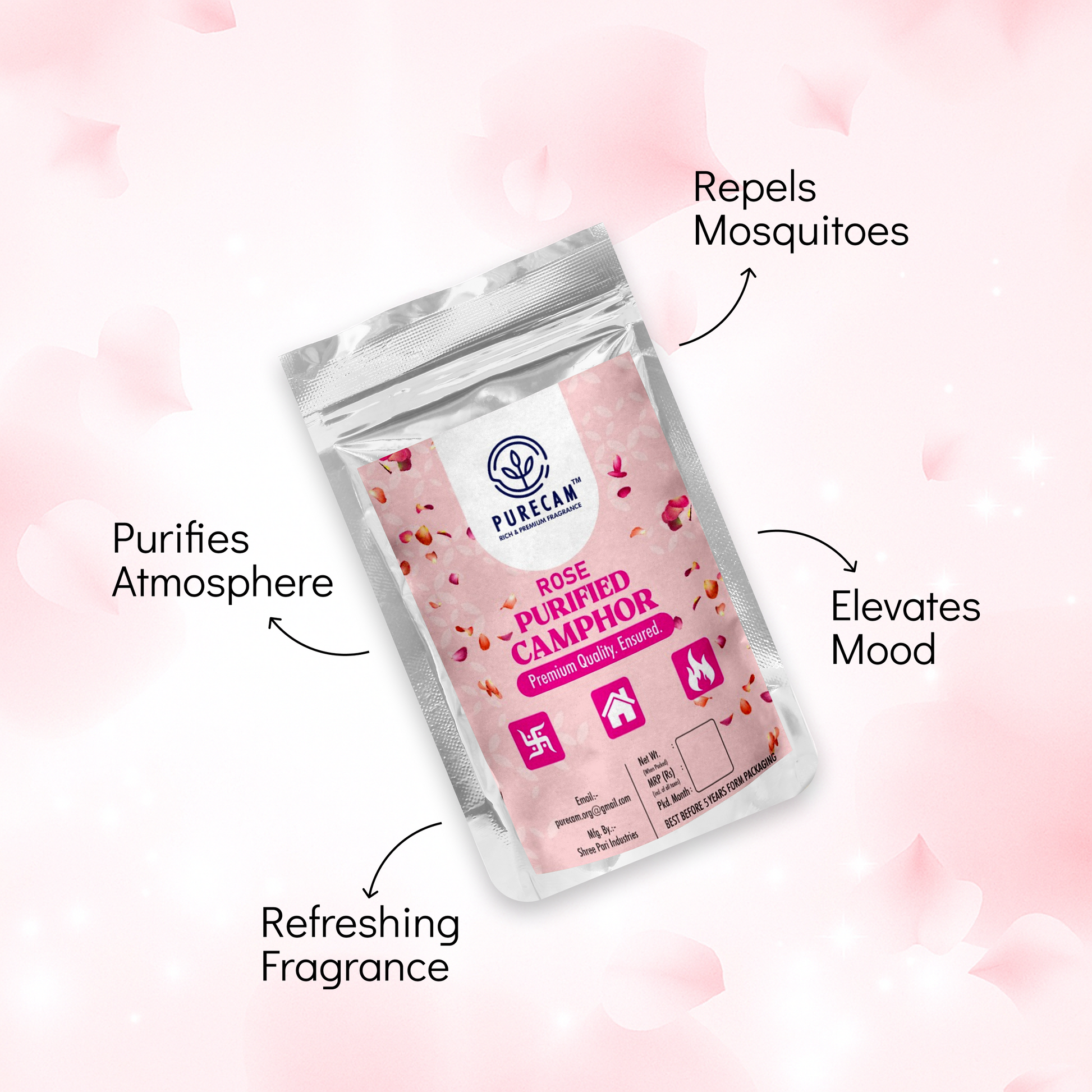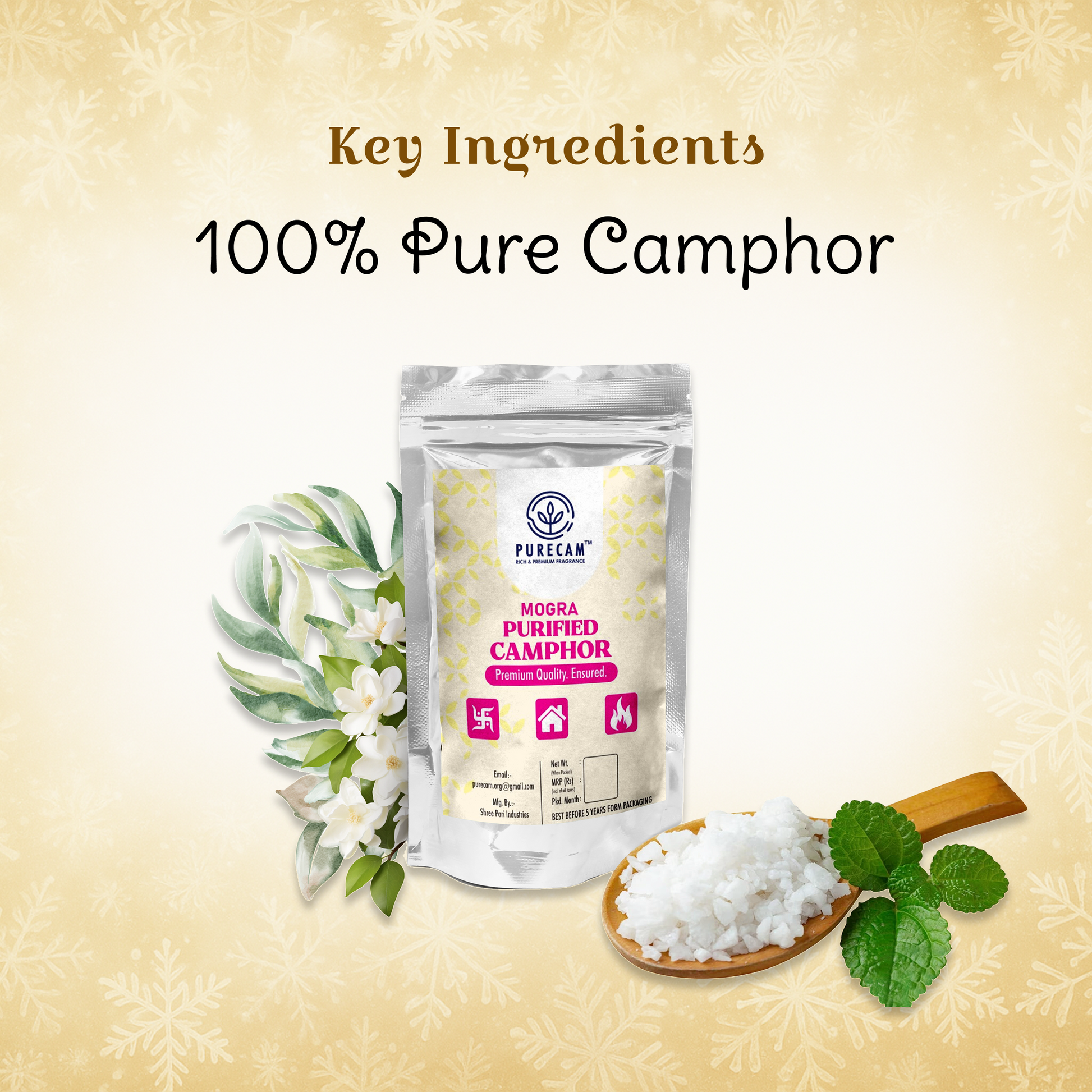 PURECAM Organic Bhimseni Camphor With Fragrance | 100% Natural & Pure | Infused with Mogra Fragrance | Ideal for Pooja, Havan, & Air Purification | Long-Lasting Floral Aroma | Chemical-Free & Safe Use 100g